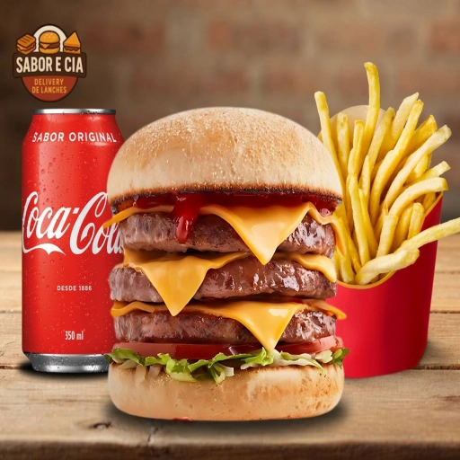 Hambúrguer Triplo + Fritas 150g + Coca-Cola 350ml