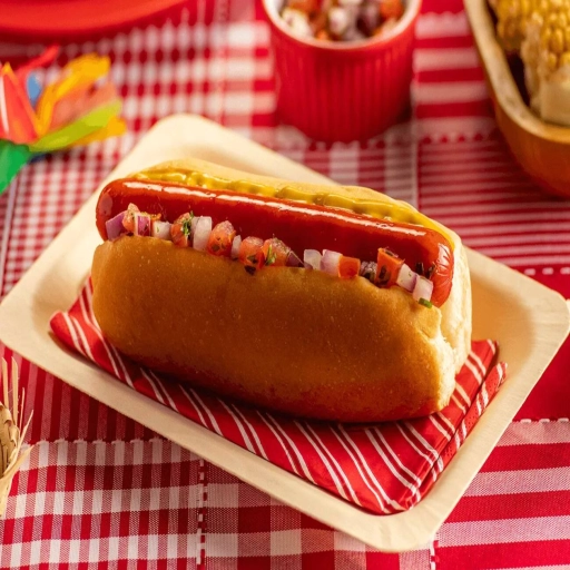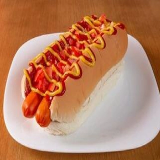 Salsicha, presunto, batata palha crocante, milho, vinagrete, ketchup, maionese e mostarda no pão fofinho.