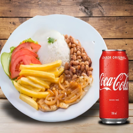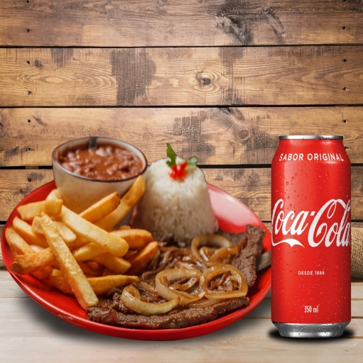 Contra Filé Acebolado + Batata Frita + Coca Cola 350ml