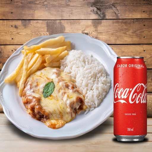 Parmegiana de Frango Premium + Fritas ou Purê + Coca-Cola 350ml