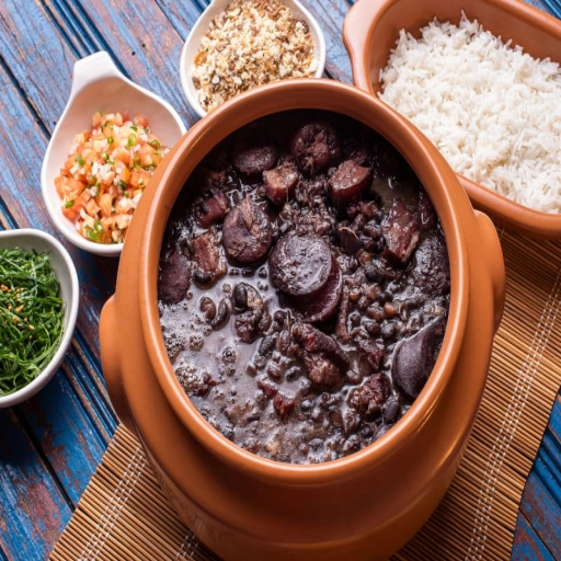 Feijoada completa com arroz soltinho, couve refogada e farofa caseira. Tradição e sabor em cada garfada!