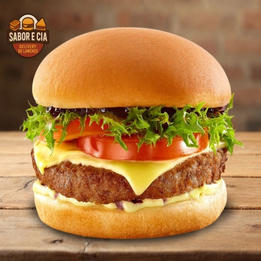Hambúrguer suculento com tomate fresquinho, cebola, alface crocante, ketchup e maionese cremosa no pão artesanal.