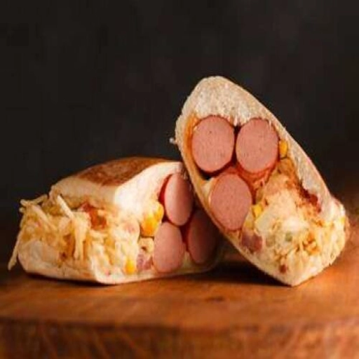 Salsicha com queijo derretido, batata palha crocante, milho, vinagrete, ketchup, maionese e mostarda no pão fofinho.