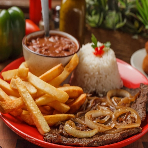 Contra filé acebolado, suculento e no ponto, servido com arroz, feijão e batata frita crocante. Sabor de verdade!