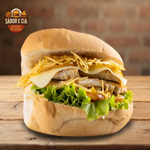 Hambúrguer de frango dourado com batata palha crocante, tomate fresco, alface, cebola, ketchup e maionese cremosa no pÃ... Ver completo